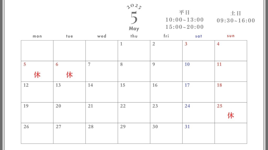 5月営業日のお知らせ